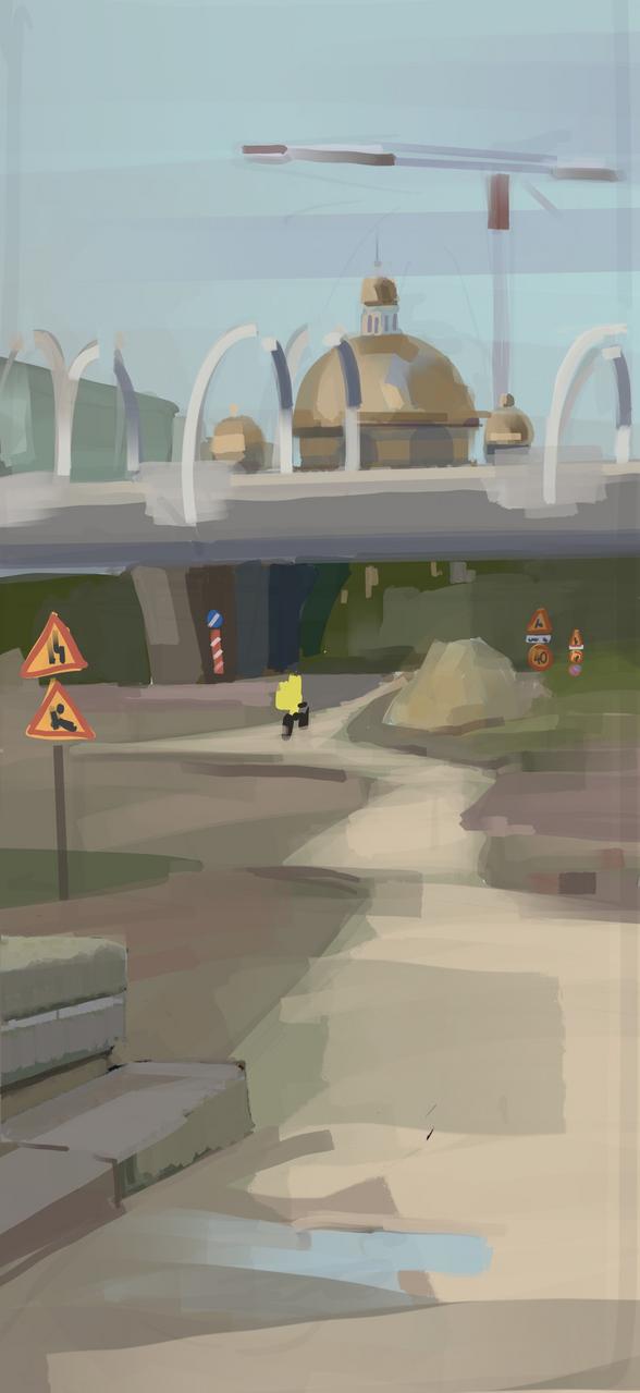 Иконка Петербурга в торжественной подсветке. Уделим внимание архитектурным формам, перспективе и световому перу для создания драматического вечернего настроения.